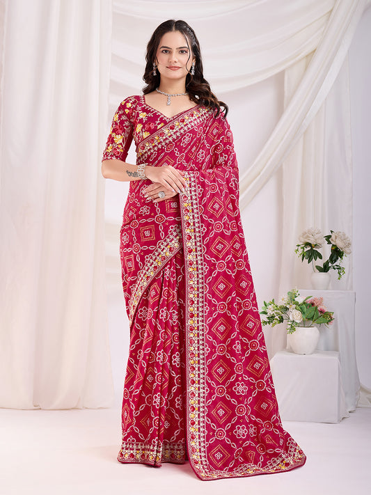 Pink Bandhani Saree