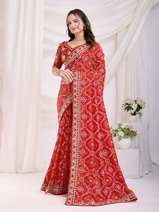 Red Bandhani Saree