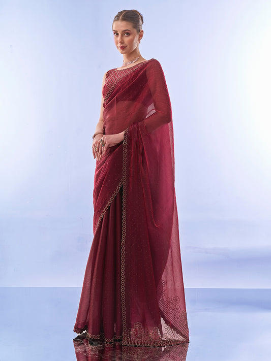Maroon Bandhani Saree