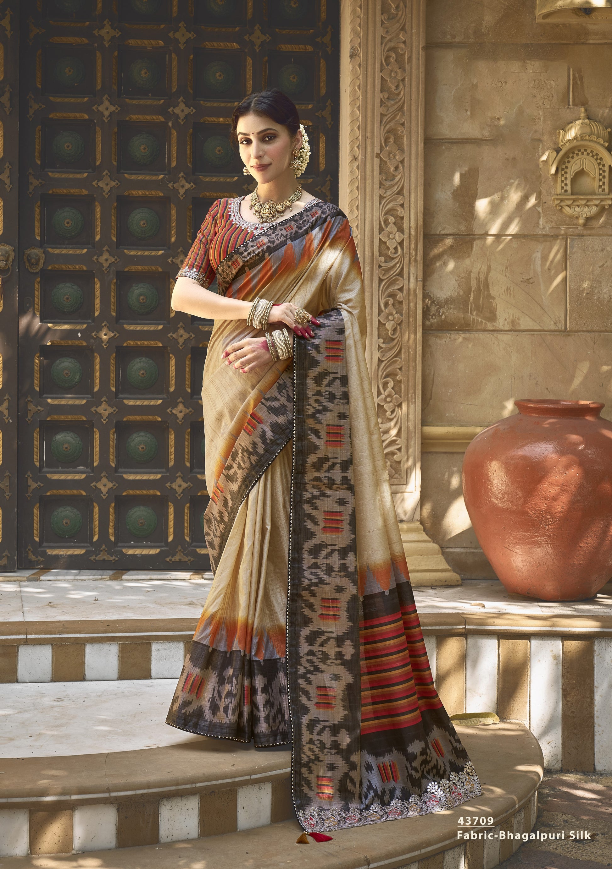 Step into sophistication with this elegant beige Gajri silk saree, beautifully adorned with intricate Gota and Minakari work. Paired with a vibrant orange pure satin silk blouse, this ensemble is a perfect fusion of grace and tradition.